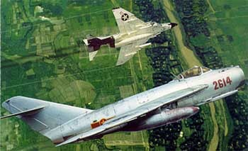 Основной соперник "Фантома" - фронтовой истребитель МиГ-21 - также был создан в 1958 году. В отличие от американского самолета, советская машина, относилась к другой "весовой категории" (взлетная масса модификаций, применявшихся во Вьетнаме - менее 8 т) и имела значительно меньшую дальность - около 1500 км. За счет меньшего веса обладал лучшей маневренностью. Однако по остальным летным характеристикам (максимальная скорость 2175-2300 км/ч, практический потолок - 18 000- 19000 м) МиГ не уступал своему американскому сопернику. Состав вооружения самолетов МиГ-21 был значительно слабее, чем у "американца", - две (в дальнейшем - четыре) ракеты класса "воздух-воздух" средней дальности Р-Зс с инфракрасным самонаведением, а также одна пушка калибром 23 или 30 мм.