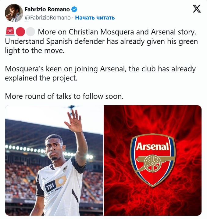 По словам эксперта по трансферам Фабрицио Романо, Москера, игрок сборной Испании до 21 года, очень хочет присоединиться к «канонирам», хотя ему придётся конкурировать за место в стартовом составе с такими игроками, как Уильям Салиба, Габриэль и Бен Уайт.