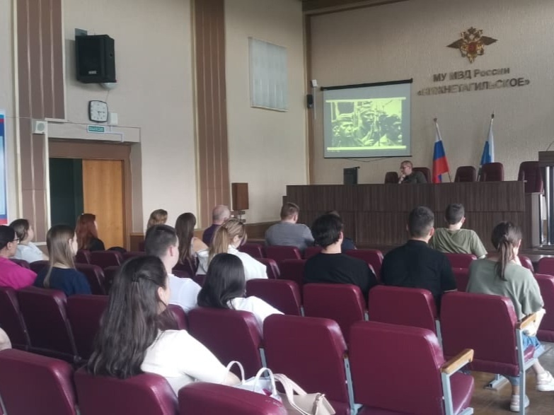 Общественный совет при МУ МВД России "Нижнетагильское" продолжает проводить наставническую работу с личным составом тагильской полиции. В межмуниципальном управлении МВД России "Нижнетагильское" прошла встреча члена Общественного совета, майора полиции в отставке, руководителя нижнетагильского отделения ВООВ "Боевое братство" Андрей Малинин с молодыми сотрудниками полиции и стажёрами. Встречу организовала заместитель начальника отдела по работе с личным составом МУ МВД России "Нижнетагильское", подполковник полиции Елена Гришанова. В рамках встречи Андрей Сергеевич рассказал о том, как пришёл служить в милицию, как проходила его служба в роте оперативного реагирования УВД города Нижний Тагил. Также Андрей Малинин рассказал о боевом опыте — полгода он находился в зоне специальной военной операции в составе отряда "Кинжал" Добровольческого корпуса ДоброКор. Основной акцент в ходе беседы был сделан на сохранение достоверной исторической памяти о подвиге советского народа в Великой Отече
