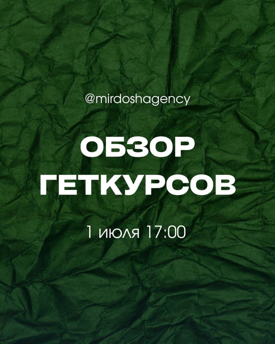 Разбираем ГетКурсы 🏃♂ Хотим напомнить, что в следующий вторник — 1 июля в 17:00 у нас пройдет эфир, где мы бесплатно разберем геткурсы наших подписчиков Это будет профессиональный обзор платформы с точки зрения методологии и пути пользователя 🙌 Мы посмотрим, как можно улучшить структуру, подачу и в общем разберем ваши сильные и слабые стороны Если вы хотите поучаствовать и разобрать ваш курс — заполните форму. Мы выберем несколько участников и все расскажем 🍄