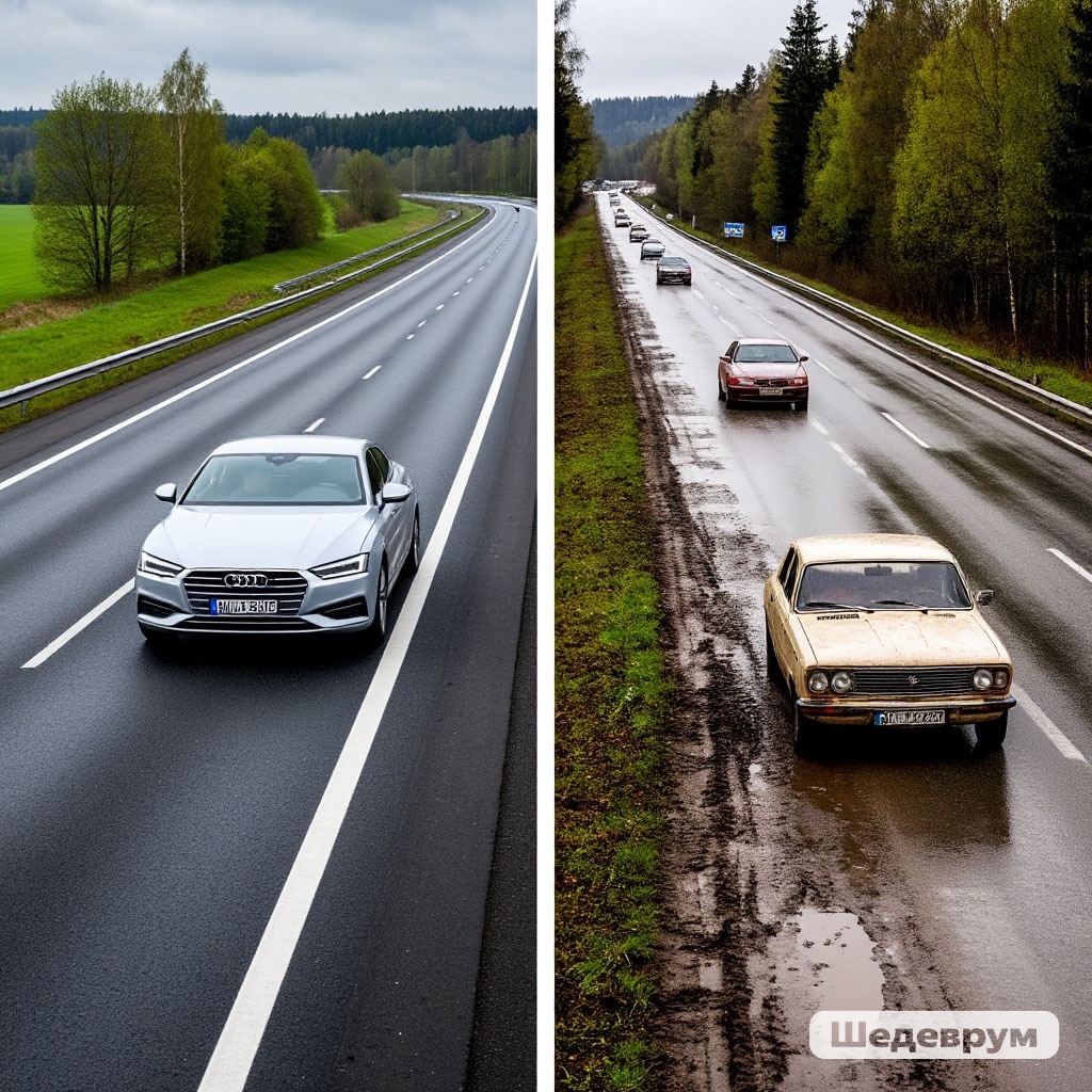 Германия по праву гордится своей безупречной дорожной инфраструктурой. Автобаны с идеальным покрытием, продуманная разметка и минимум ям стали визитной карточкой страны. В то же время российские дороги, особенно в регионах, регулярно становятся объектом критики и народного фольклора. В чем же кроется принципиальная разница между немецким и российским подходами к дорожному строительству? Давайте проведем детальный анализ пяти ключевых факторов, определяющих это различие, и рассмотрим возможные пути улучшения ситуации в России. 1. Качество материалов и технология укладки: немецкая педантичность против российской экономии Немецкие дорожные службы используют исключительно высококачественные материалы: - Специальные марки асфальта с добавлением гранитной крошки, повышающей износостойкость - Многослойное покрытие (до 7 технологических слоев на автобанах) - Строгий температурный контроль при укладке (не ниже +10°C) - Регулярное обновление верхнего слоя (каждые 10-12 лет) В России же ча