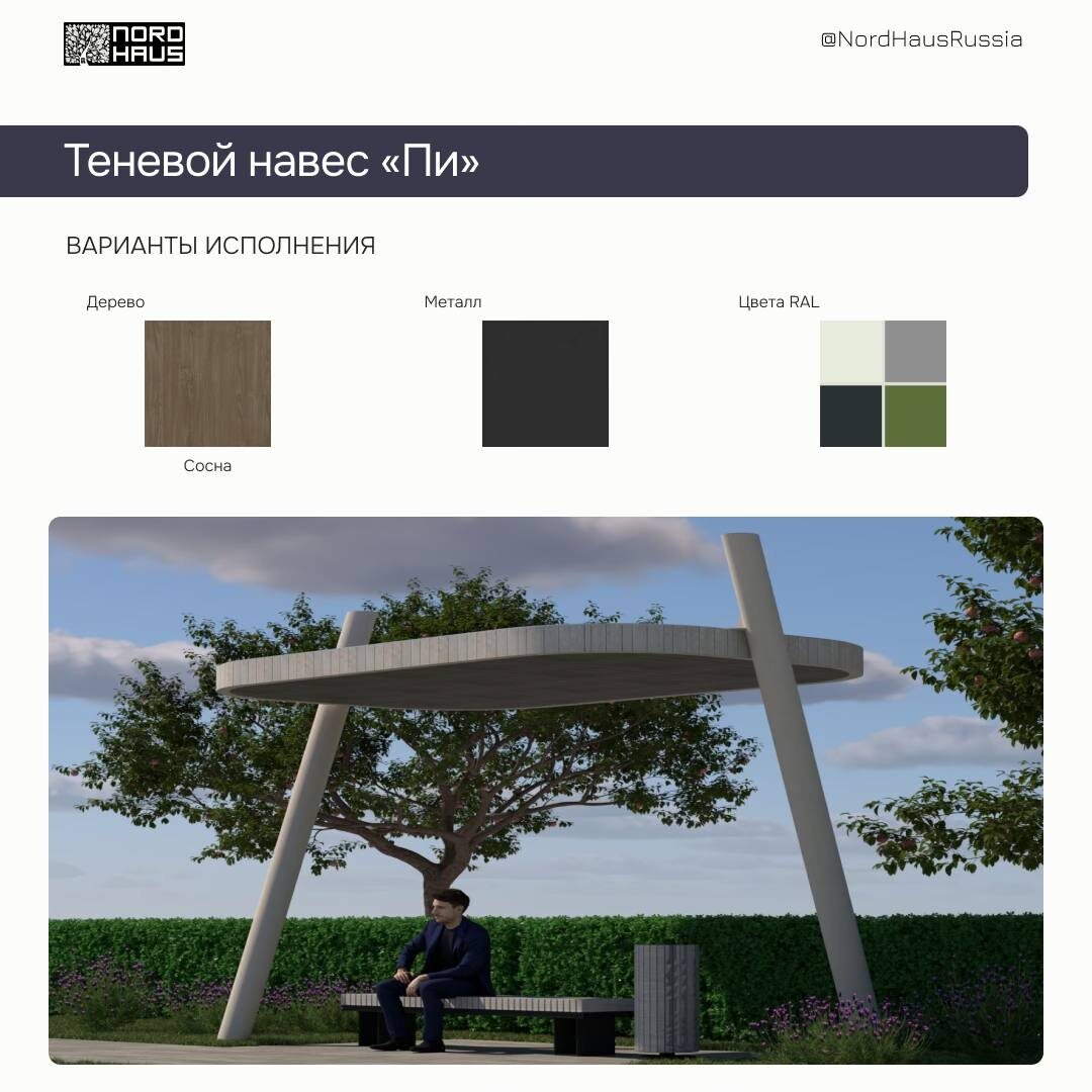 Теневой навес «Пи» - архитектурное решения для создания теневых зон и мест для отдыха