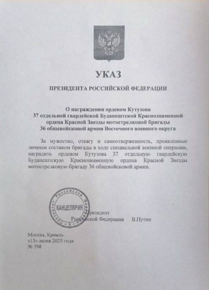 Коллектив Воина ДВ от всей души поздравляет личный состав 37 гвардейской мотострелковой бригады с заслуженной наградой - орденом Кутузова! В