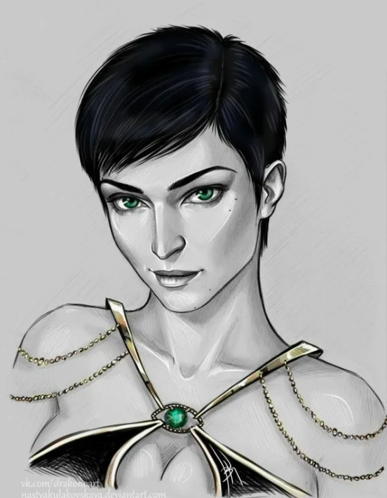 Трисс характеризует ее, как «младшую» из нильфгаардок, но это так себе подсказка. В отличие от Ассирэ, которая только недавно вспомнила, что существует расческа, Фрингилья явно тщательно следит за собой. Так с чего бы ей не выглядеть молодо, раз у нее есть такая возможность? Ни одна женщина не согласится выглядеть на 50т, если может выглядеть на 30ть, а еще лучше на свеженькие сочные 25ть! Уж на что Тиссая была ученой до мозга костей, сухарем и педантом, но по словам Йен активно использовала эликсиры, а Фрингилье уж сам бог велел.