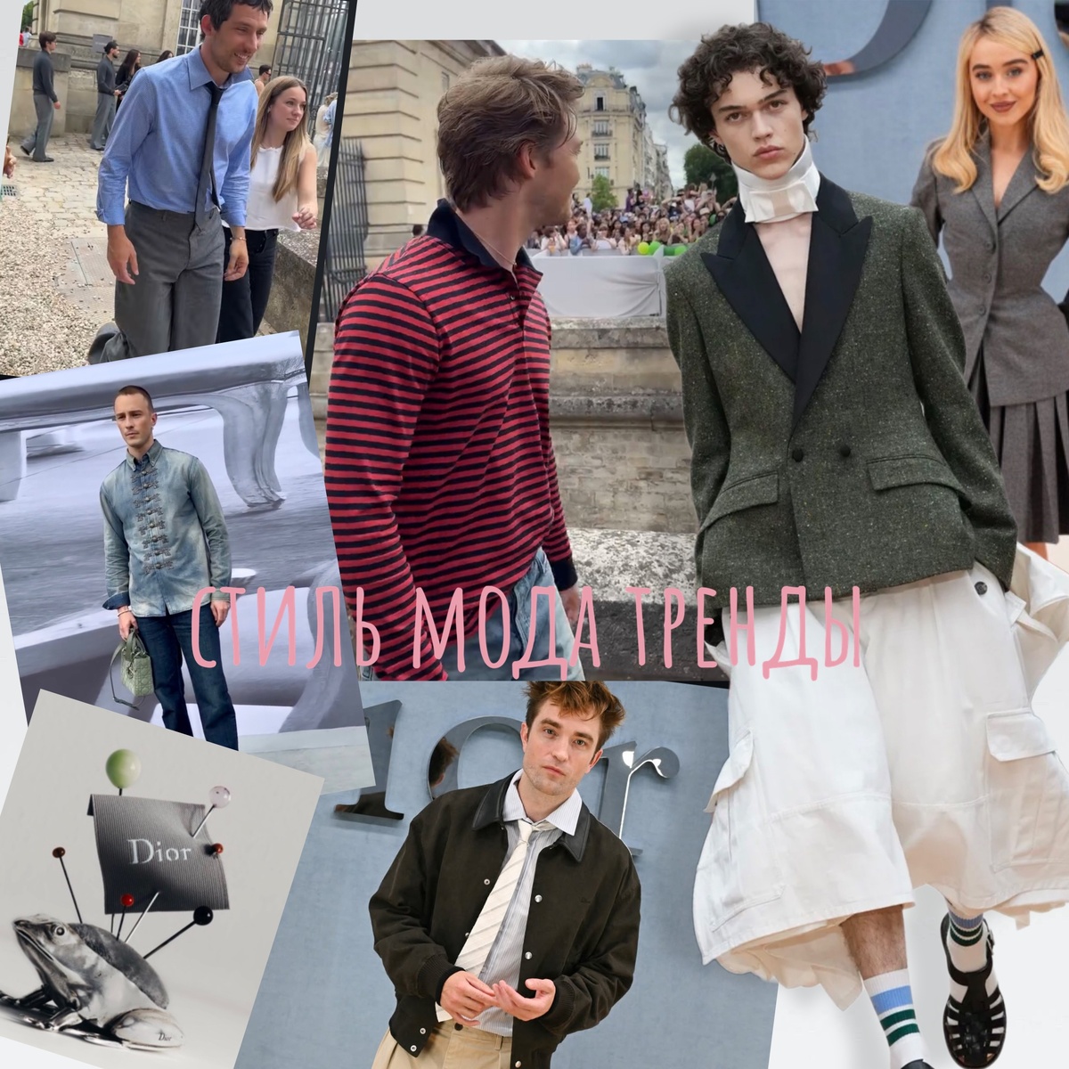 Дом Dior сегодня представил первую коллекцию главного кутюрье, приглашенного Джонатана Андерсона, впервые за многие годы в Доме ставшего отвечать и за мужскую ( Ким Джонс, гуд бай!) и за женскую ( Мария Грация Кьюри, ариведерчи!) коллекции. Была показана именно мужская линия, так как в Париже сейчас идет Неделя мужской моды. Весна-Лето 2026. Я всегда за эксперимент и Андерсон довольно интересный дизайнер. Но тут Диор. Это знаете, как Тадж Махал вдруг разрешили реконструировать Бэнкси. Вот примерно такие у меня ощущения от шоу, которое закончилось пару минут назад. Первое фото показа- как анонс. Да, вот так кутюрье проанонсировал свою коллекцию. И тут началось. То, что меня и тревожило: появление гостей. На дефиле, как вы знаете, приглашенные знаменитости и амбассадоры Дома надевают именно вещи того бренда, что их пригласил на показ. Ну и амбассадоры- им первыми позволено показать кусочки новых коллекций. Мы помним, что милашка Паттинсон недавно как раз и стал послом мод