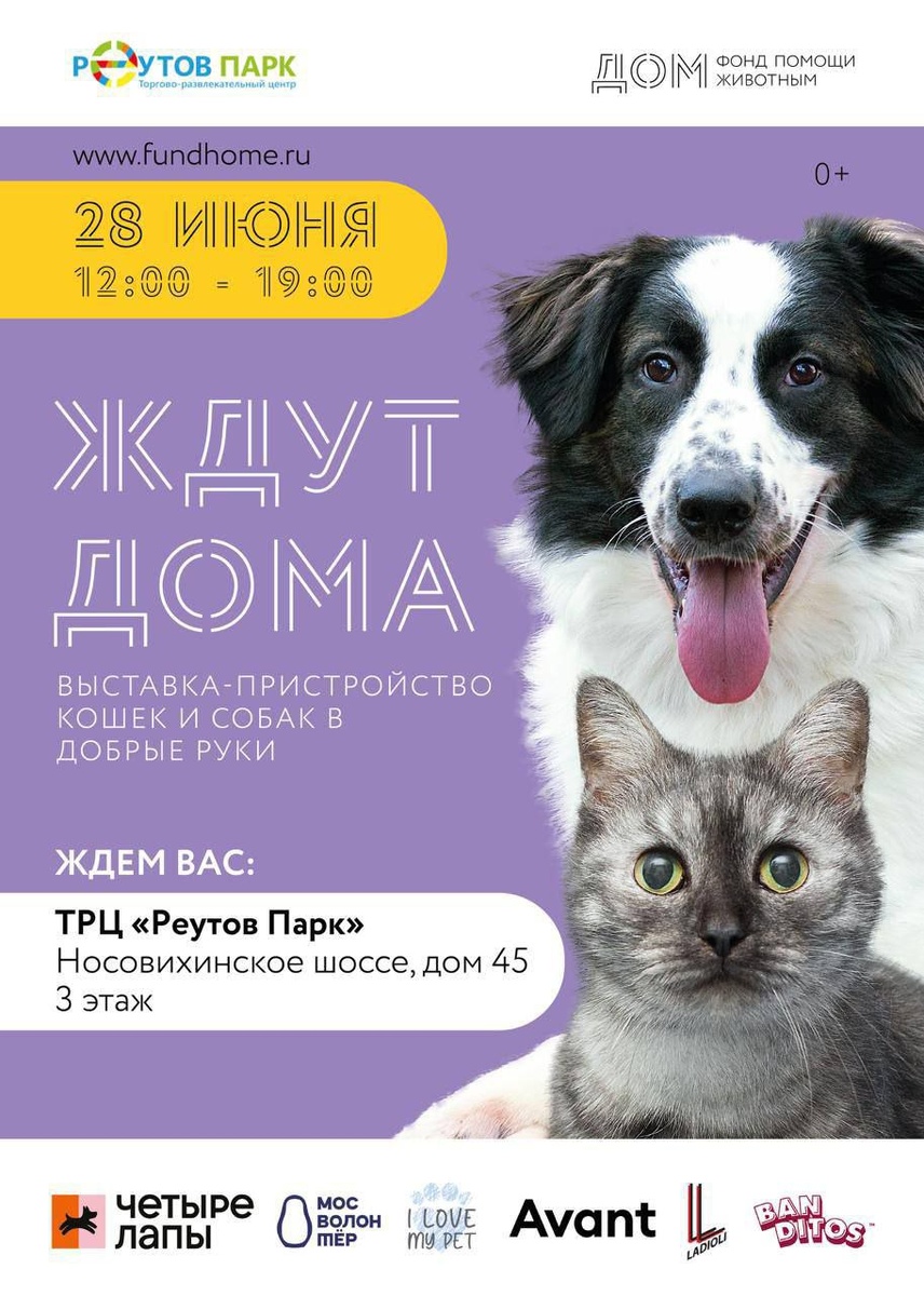 🐾 Уже завтра пройдёт выставка-пристройство «Ждут ДОМа», первая в эти выходные! Мероприятие состоится в ТРЦ «Реутов Парк». Ждём гостей с 12:00 до 19:00! Вместе с волонтёрами встречи будут ждать 40 кошек и 20 собак, которые готовы уехать ДОМой прямо с выставки. Познакомиться с ними можно по тегу #выставка_ждутдома_280625 или в нашем каталоге. Кроме хвостатых подопечных, гостей будут ждать: ✨ хорошая музыка; ✨ наша замечательная ведущая; ✨ благотворительный маркет; ✨ конкурсы и призы. До встречи ❤️ 🤩 Подписаться | Прислать новость | ВКонтакте | Дзен | Чат