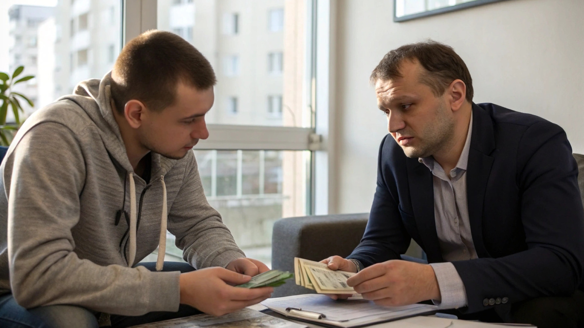 За столом сидели двое: мой муж и незнакомый мужчина в дорогом костюме. На столе — бумаги, ручки, открытый ноутбук.