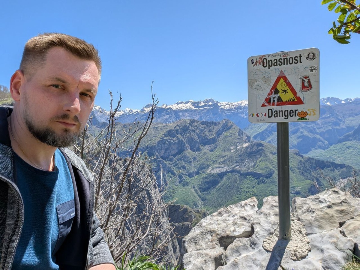 Грло Соколово. Черногория. 29.04.2025 Ещё немного видов с верхушки ущелья. Для тех кто не понимает, что на высоте опасно и упасть можно, специально знаки установили предупреждающие.