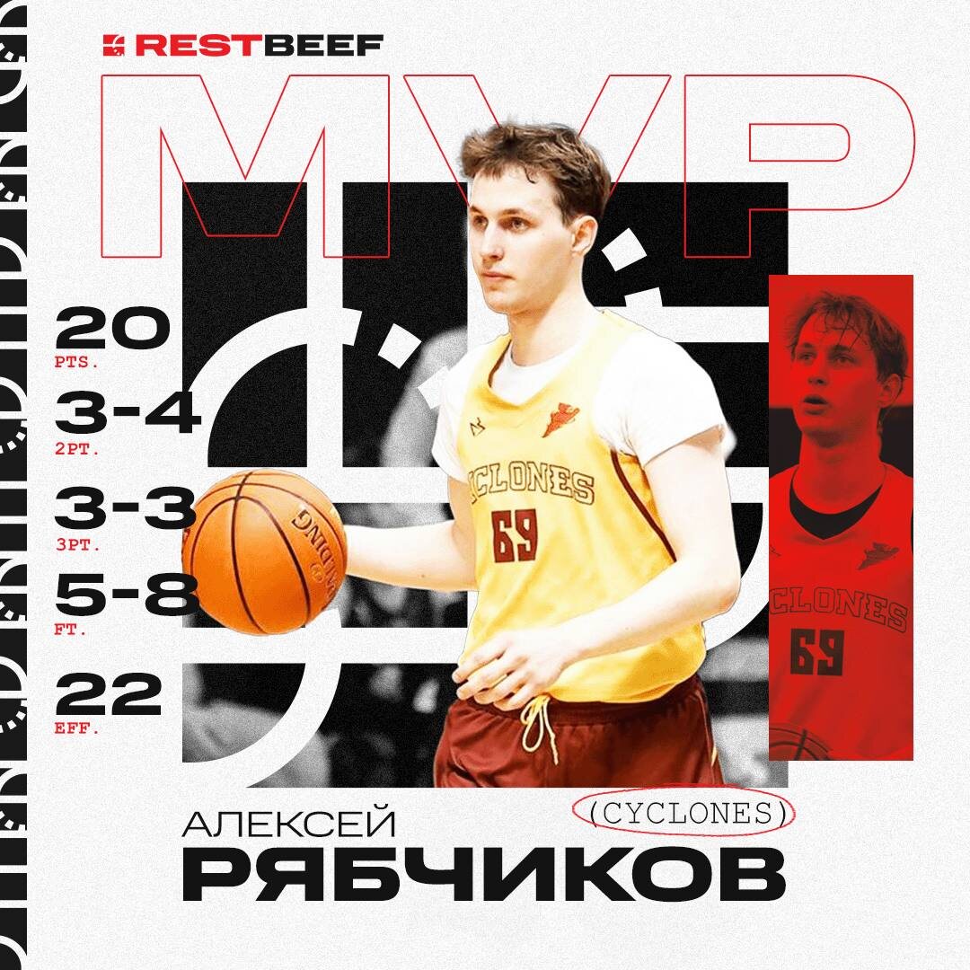 "Циклоны" и База забыли как забивать в день игры, набрав на двоих 74 очка с учетом овертайма. В такой засушливой игре Рябчиков стабильно обеспечивал команду очками. В первой четверти Алексей набрал 3 из 5 командных очков, во второй 5 из 8, в третьей 6 из 12, в четвертой 4 из 11.