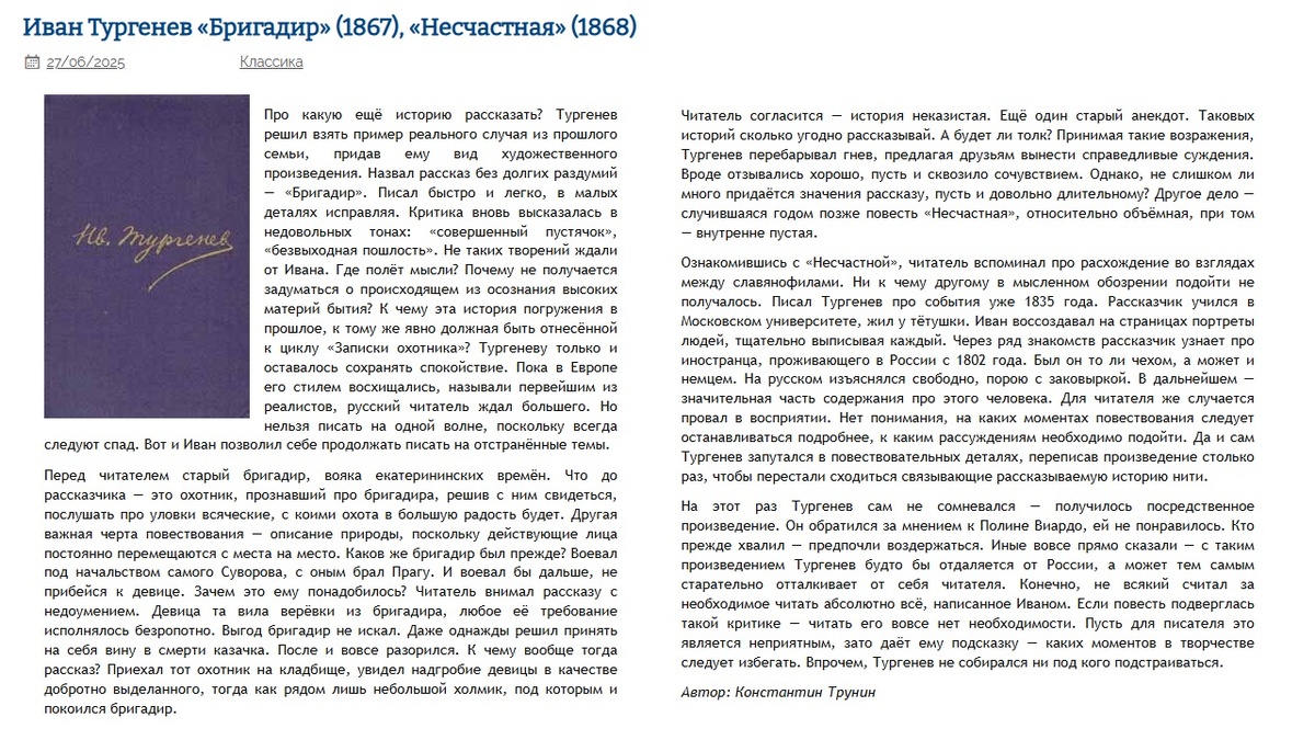 Иван Тургенев "Бригадир" (1867), "Несчастная" (1868) | Критика