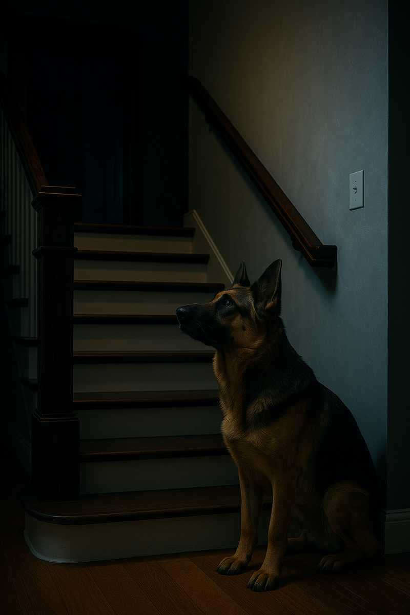Сначала думали — стресс. Новое место, переезд, хозяйская суматоха. Немецкая овчарка Дейзи ходила по дому, скулела, лаяла без повода. Особенно по ночам. Хозяева — молодая пара — сначала не придали значения. Но собака менялась. Перестала есть. Не отходила от хозяйки ни на шаг. Любая попытка выйти из комнаты — лай, скулёж, тревога. Поведение стало навязчивым Дейзи сторожила хозяйку, как будто что-то защищала. Рычала на гостей, не подпускала соседей. На улицу выносить мусор — уже проблема. Всё сопровождалось лаем и паникой. Повели к ветеринару. Диагнозов — никаких. Физически — здорова. Врач сказал: «Понаблюдайте, может адаптация». Прошёл месяц. Хуже. Дейзи начала выть по ночам. Особенно — когда кто-то поднимался на второй этаж. Однажды хозяева услышали звуки Шаги. Скрипы. Будто кто-то медленно ходит по дому. Сначала списали на ветер. Потом — на нервы. Но звуки повторялись. Регулярно. Словно кто-то живёт в доме, кроме них. И каждый раз — Дейзи срывалась. Сначала лай. Потом ви
