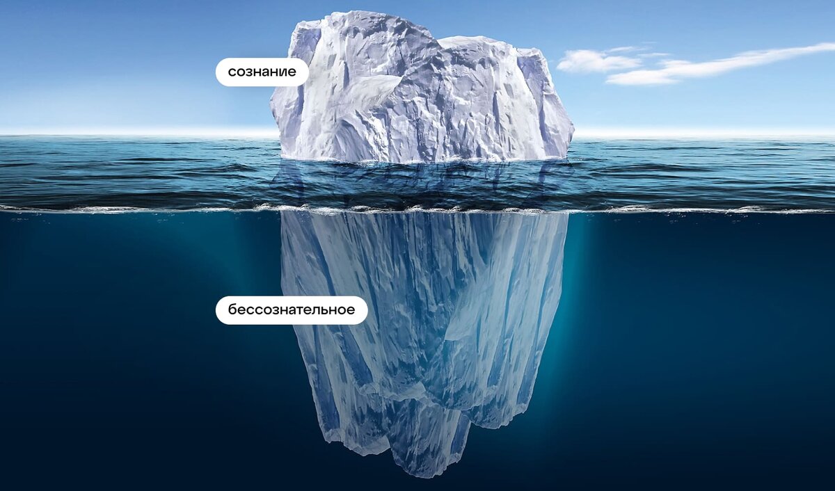 Представьте айсберг. Видимая часть — это ваше сознание, которое может удерживать в памяти 5-9 элементов одновременно. А подводная часть — бессознательное, которое обрабатывает около 11 миллионов бит информации в секунду.