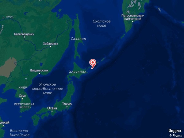 В 31 км к северо-востоку от Шикотана, Россия.