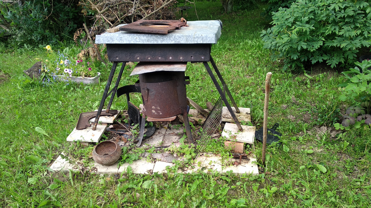 Давно хотела привести в порядок место, где стоит мангал. Пользуемся им довольно часто, ещё чаще используем печь для казана. Но место , где стоят мангал и печь выглядит весьма не приглядно Давно хотелось создать уютную и удобную зону для приготовления пищи на открытом огне. Решила сделать площадку , вымощенную природным камнем, благо камней рядом с нашей дачей можно насобирать в избытке. Сначала разметила основание. Бортики сделала из старой плитки . На дно положила черный нетканый материал . Он нужен не для того , чтобы сорняки не росли, а для того , чтобы песок не "ушел" в нашу глину. Дальше насыпала слой песка около 10 см, разровняла, утрамбовала и хорошенько пролила водой. Этот нижний слой песка должен быть очень плотным, он будет основанием для укладки камней. Когда вода впиталась, насыпала ещё слой песка. Его уже не трамбовала и не проливала. И приступила к укладке камней. Дело это не быстрое, камни не из магазина))), все разные по размеру и форме. Каждый камень надо несколько ра