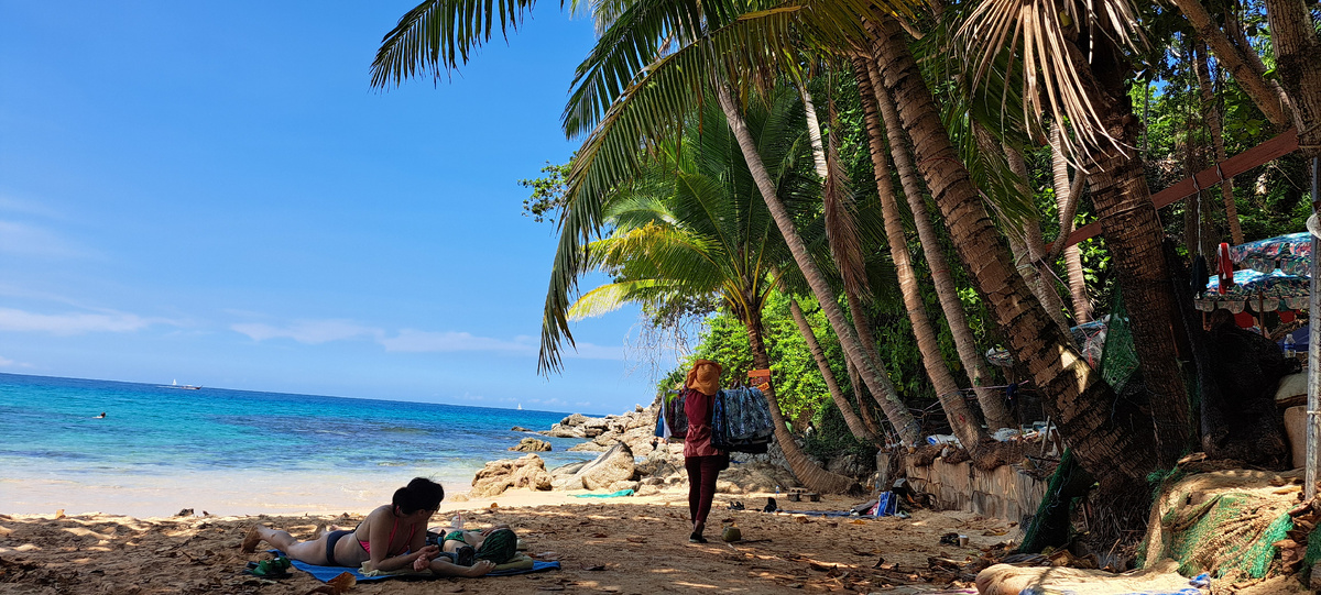 Начало нового дня, как всегда, началось с завтрака из 7/11. Далее по плану был пляж. Мы снова сели на смарт-бас и отправились на красивый пляж... На пляж Сурин. Подробнее о нем рассказывала раннее здесь➡ Surin Beach Вся прибрежная полоса этого пляжа усеяна пальмами и байками. Мы выбрали правую его сторону. Устроились возле пальм и камней. Песок в этом местечке, правда, рыжеватый и всё окрашивает. Но зато какой вид на весь пляж! Да и людей в этом углу намного меньше, особенно с утра. Как всегда, по приезду на пляж мы заглянули в наш любимый магазинчик "Seven Eleven" и набрали снэков, чтобы было веселее проводить пляжное время. Заскучать нам не давали как местные птички, шагающие мимо нас... ...так и вараны, гуляющие в лесополосе пляжа. На пляже Сурин мимо нас постоянно проплывали рыбки, поэтому многие люди здесь занимаются сноркелингом. Жаль, что я не взяла с собой трубку и маску. Накупавшись, мы пошли на камни, с которых открывается обалденный вид на берег. Невероятно живописный пляж.