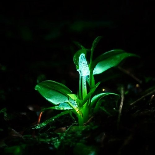 Тайный свет любви в самом сердце джунглей Тихо падает ночь на тропический лес. Но под сенью гигантов царит не абсолютная тьма. Вглядись – у корней старых деревьев разливается призрачное сияние. Это не магия, а наука, застывшая в изящном образе нектриновых грибов. Их зеленоватое, почти лунное свечение – биолюминесценция – загадка, недавно разгаданная учеными. Оказалось, что этот волшебный фонарик – крик о любви. Спектр света гриба идеально совпадает с диапазоном зрения ночных насекомых в лесу. Как мотыльки на пламя, летят они на всесезонный зеленый "светлячок". И переносят на своих лапках споры гриба, даря ему новую жизнь среди корней и опавшей листвы. Гриб дарит свет, мухи – будущее. Нежное свечение – не для красоты, а гимн выживания, поющий о вечном содружестве живых существ в таинственной ночи джунглей.