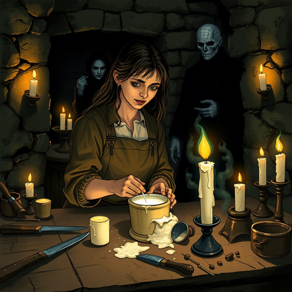 Ты создала вооружённую свечу, — сказал Элиан. — Я предупреждал тебя. Теперь ты вступаешь в игру по-настоящему. Начало здесь: https://dzen.ru/a/aFkQj-8yAweFp7z6 Алиса работала всю ночь. Внутри мастерской пасеки она расставила инструменты на столе с почти ритуальной точностью. Никакой спешки. Каждое движение — как удар сердца. Она знала, что то, что она создаст сегодня, будет не просто свечой. Это будет щит . Ключ . Оружие . Это будет её первая вооружённая свеча . Она открыла книгу Оскара на странице, помеченной красной лентой, — странице, которую он никогда не показывал ей напрямую. Там были записи о так называемых защищающих огнях — свечах, способных не только хранить память, но и отражать силу Темных Хранителей . Рецепт был простым… и невыполнимым: Слово должно быть именем , которое нельзя забыть. Алиса нашла всё необходимое. Пыль от старого пламени хранилась в маленькой баночке, подписанной самим Оскаром. Воск — тот самый, чистый, который хранился годами. И кровь… её собственная, выс