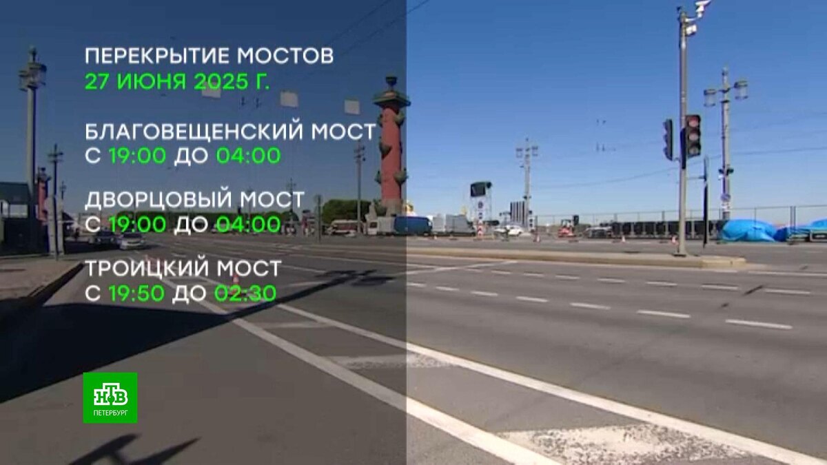 [ Смотреть видео на сайте НТВ ] Подготовка к празднику выпускников «Алые паруса» серьезно скорректировала дорожное движение в Петербурге. В связи с генеральной репетицией сейчас перекрыто движение в центре города. Закрыты для движения Благовещенскоий, Дворцовый и Троицкий мосты. Откроют их только рано утром. В ближайшие дни действует и запрет на движение личного и общественного транспорта. Он будет распространятся на часть набережных и прилегающие к месту проведения мероприятия улицы. По этой же причине трассы многих автобусов, троллейбусов и трамваев временно изменены. Правительство города призывает регулярно мониторить актуальную ситуацию. И не забывать о том, что сегодня в помощь водителям до 21:00 действует бесплатный проезд по ЗСД. Акция распространяется на все маршруты внутригородских участков магистрали. Загородный же останется платным. [ Смотреть видео на сайте НТВ ]