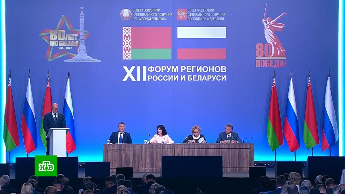 [ Смотреть видео на сайте НТВ ] В Нижнем Новгороде прошел Форум регионов России и Белоруссии. Союзное государство России и Белоруссии стало одним из наиболее прочных и успешных объединений. Оно основано не только на общих интересах, но и на доверии, единстве истории и ценностей. Такое заявление сделала спикер Совета Федерации Валентина Матвиенко в Нижнем Новгороде на Форуме регионов двух стран. Как она подчеркнула, рекорды бьют показатели взаимной торговли, за несколько лет успешно выполнены 28 масштабных союзных программ. Валентина Матвиенко, председатель Совета Федерации РФ: «Реализуются крупные проекты в сфере атомной энергетики, фундаментальной науки, космонавтики, в чем мы могли убедиться сегодня и в ходе осмотра общей выставки. Подписан договор о формировании объединенного рынка электроэнергии». По словам спикера Совета Федерации, с 2025 года жители России и Белоруссии могут пользоваться мобильной связью и интернетом на территории обеих стран по «домашним тарифам». Выступивший на