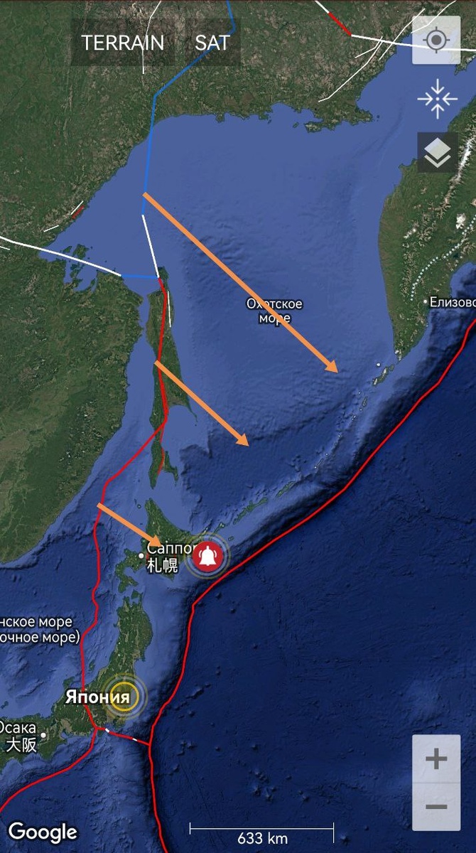Утром 27.06 мелькнул ОСТИ по типу провала по западной границе Охотской плиты