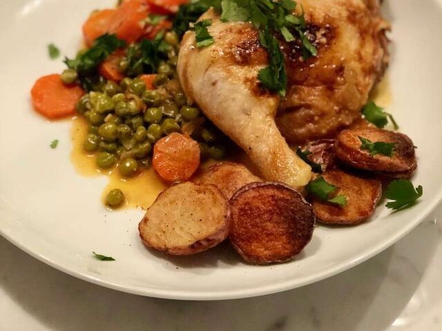 Pollo Arvejado (курица по-галисийски) Это традиционное блюдо из Галисии, через Чили, к вам. Это блюдо также можно приготовить с бараньими ребрышками - вкусный рецепт для полноценного обеда! ⌛ Подготовка: 20 мин. ⏰ Приготовление: 1 час. 0 мин. 🍴 Количество: 6 порций Ингредиенты ✅ 2 столовые ложки оливкового масла ✅ 1 (0.25 кг) целая курица, разрезанная на 6 частей ✅ ½ луковицы, нарезанной кубиками ✅ 3 зубчика чеснока, измельченного ✅ ½ стакана белого вина ✅ 1 стакан куриного бульона ✅ 3 моркови, нарезанные кубиками ✅ 1 (500 гр) пакет замороженного зеленого горошка ✅ 1 чайная ложка молотого кумина ✅ 1 чайная ложка паприки ✅ соль и перец по вкусу ✅ 3 больших пекарских картофеля, очищенных и нарезанных кубиками ✅ ¼ стакана оливкового масла Инструкция приготовления 1. Разогрейте 2 столовые ложки оливкового масла в большой глубокой кастрюле или голландской печи на средне-высоком огне. Добавьте кусочки курицы и обжарьте со всех сторон до золотисто-коричневого цвета, около 3 минут. Д