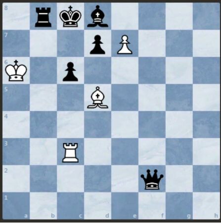 На шахматной доске у черных огромный перевес в виде лишнего ферзя. Черные грозят поставить мат в 1 ход. В пору сдаваться. Однако белые начинают и выигрывают. Ставят мат в несколько ходов. Подписка и лайк приветствуются. Решение смотрите далее. 1. Белые отлают единственную ладью на "с6". 1. ................................ черные бьют ладью пешкой. 2. Белые дают шах слоном. 2. ................................ черные отходят королем. 3. Белые объявляют на "е8" коня, мат. Более сложная задача 9 века тут >>>>