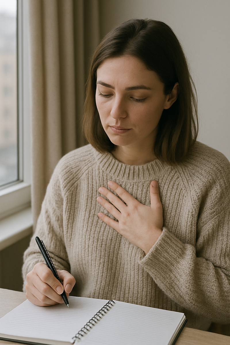 Вам нужно назвать вслух (или про себя): Это старый приём из осознанности, но с обновлением: вы не «медитируете», а возвращаетесь в момент. В тревоге наше внимание захвачено будущим. Мы возвращаем себе контроль — не через голову, а через ощущения. «Дорогая моя тревога,