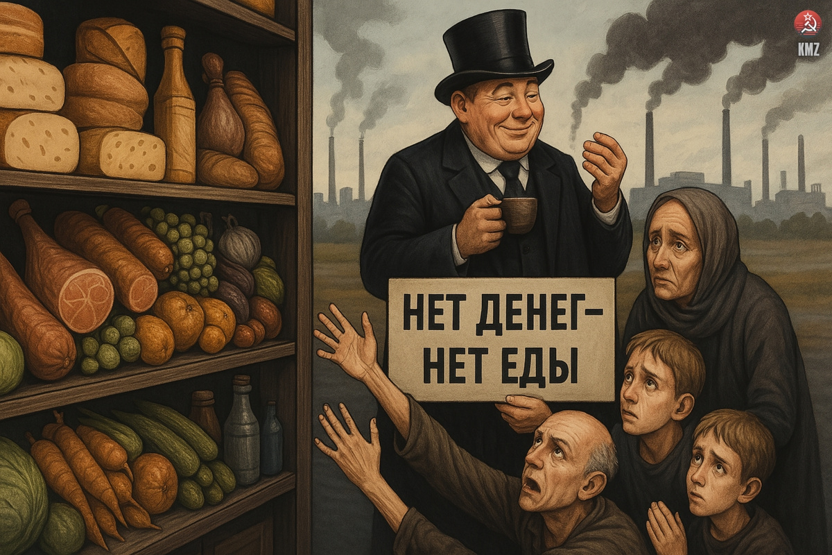Представьте завод по производству колбасы. Рабочие приходят с утра, крутят фарш, набивают оболочки, упаковывают продукцию. К вечеру склады полны ароматной колбасы. Но вот парадокс — сами рабочие не могут себе её купить! Почему? Потому что владелец завода платит им ровно столько, чтобы они могли прийти завтра и снова работать, но не больше.