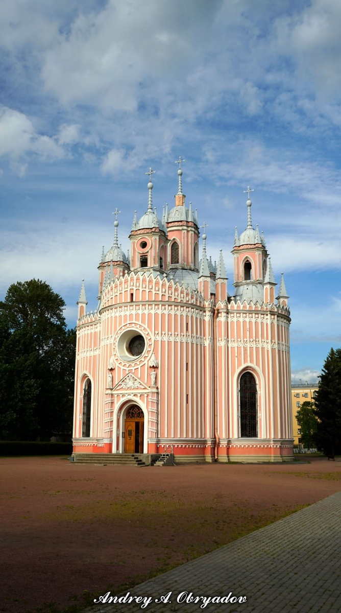 Лет шесть назад из «путешествий по Интернету» я узнал об этой церкви. Пожалуй, это самая необычная церковь из тех, которые я видел в Санкт-Петербурге и Ленинградской области. Встретить готические черты в православных храмах мне не доводилось ранее. Чесменская церковь, о которой пойдет речь ниже, построена в стиле неоготики. Строительство храма и дворца недалеко от Путевого дворца было одобрено Екатериной II. Как говорят предания старины, именно на месте храма императрица получила от курьера известие о победе в Чесменском бою. Церковь Рождества святого Иоанна Предтечи (Чесменская) построена в ознаменование победы русского флота над турецким в Чесменской бухте Эгейского моря в 1770 году. Вместе с Чесменским дворцом здание храма составляло в прошлом единый ансамбль, обращенный к бывшему Царскосельскому тракту. Церковь являлась капитульным храмом ордена Святого Георгия. В настоящее время церковь является памятником архитектуры федерального значения. Вблизи церкви расположено Чесменское вои