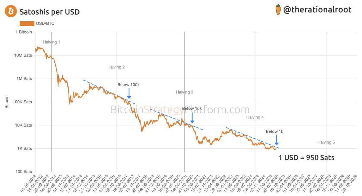💵 Did you know? Right now, 1 US dollar = 950 satoshi! 🪙 That's some serious crypto math! #Bitcoin #CryptoTrends