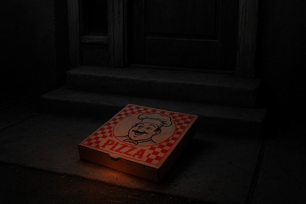 Я не видел никакой машины. Не слышал шагов. Просто пришло уведомление, что заказ доставлен. Я открыл дверь — коробка стояла посередине крыльца. Uber Eats сделал фото, как обычно, но это фото выглядело… старым? Зернистым, с потускневшими цветами, словно отсканированная бумажная копия.