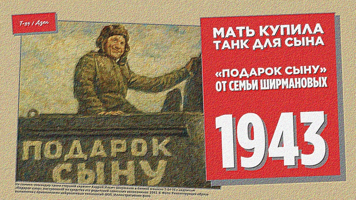 26 июня 1943 года в Свердловске свершилось волнующее событие. Мария Филипповна и её супруг Илья Андреевич лично вручили своему сыну Андрею новенький танк Т-34. Рабочие завода «Уралмаш» нанесли на башню машины трогательную надпись – «Подарок сыну». Вместе с наводчиком орудия Андреем Ширмановым у легендарной «тридцатьчетвёрки» стоял весь его боевой экипаж: командир лейтенант Константин Барский (Тула), механик-водитель сержант Дмитрий Грицко и радист старший сержант Афанасий Ковалёв. Машина, воплотившая материнскую любовь и жертвенность тыла, была готова к отправке на передовую.