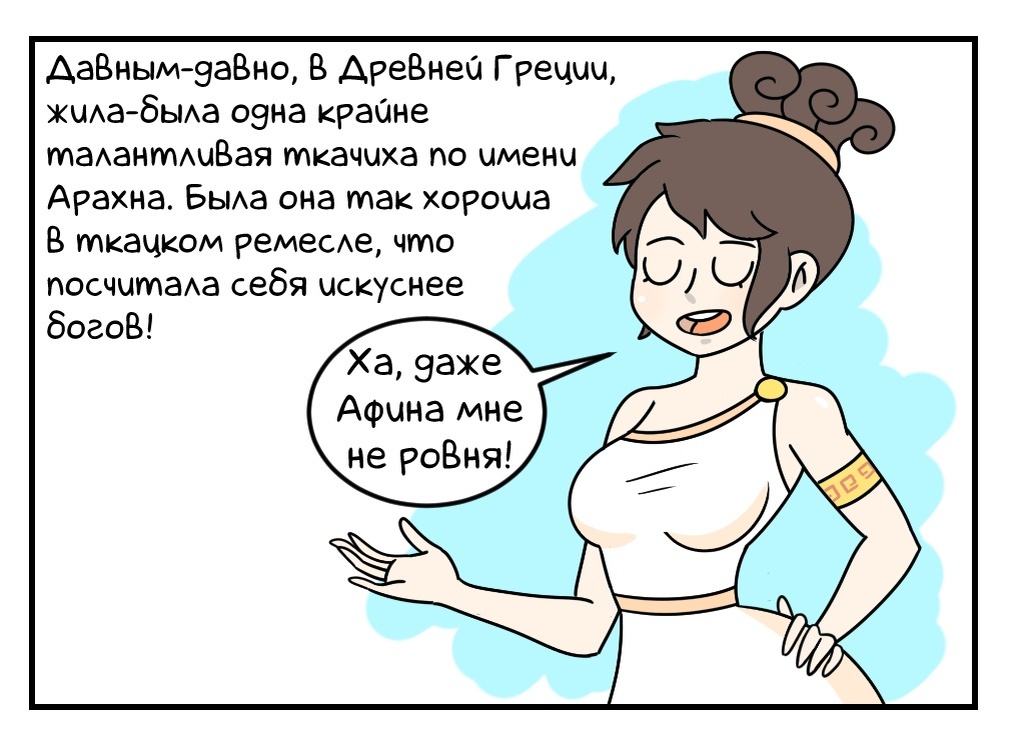 В детстве, я был самым настоящим фанатом мифов разных стран мира. Мифы древней Греции, мифы древнего Египта, скандинавские, славянские мифы - всё это было мне очень интересно и повзрослев, мне захотелось нарисовать комиксы по этим мифам и связать их с нашим современным миром. Вот, например, комикс о ткачихе Арахне: Загробная жизнь в мифах у древних греков была описана достаточно подробно. Царство бога подземного мира - Аида, представляло из себя место с массой интересных личностей и созданий. О нём я и решил нарисовать следующий комикс: Мне нравится порой шуточно объяснять происхождение тех или иных вещей, так что прошу любить и жаловать, современный комикс о богине Нике: Впрочем, хватит на сегодня комиксов по мифам древней Греции. Как насчет комикса, по мифологии древнего Египта? В данном случае, в центре истории оказался загадочный и непостижимый Сфинкс: Расскажите - какой из комиксов вам понравился больше всего? И не забудьте подписаться на канал Woostar, у меня ещё для вас есть мас