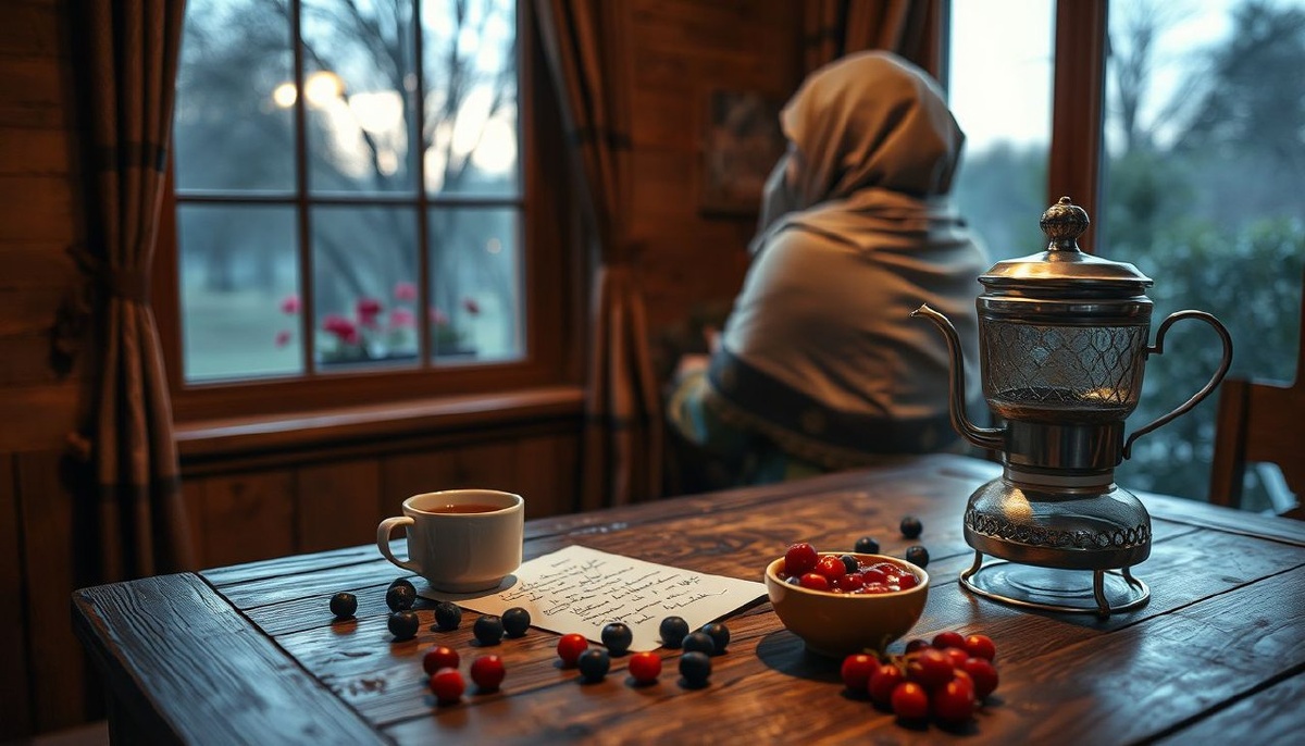 Они сели на скамеечку у печки, долго молчали, перемешивая мысли, как будущее варенье. Рядом корзина с горькими ягодами, на столе — зябкое письмо. Алена вдруг вздохнула: