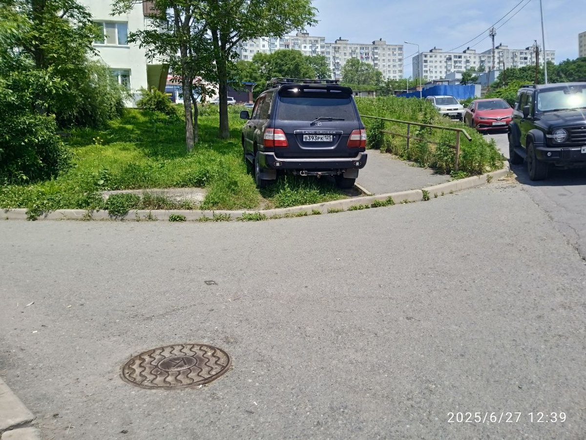 Очередной паркун на газоне напротив Космонавтов 23.