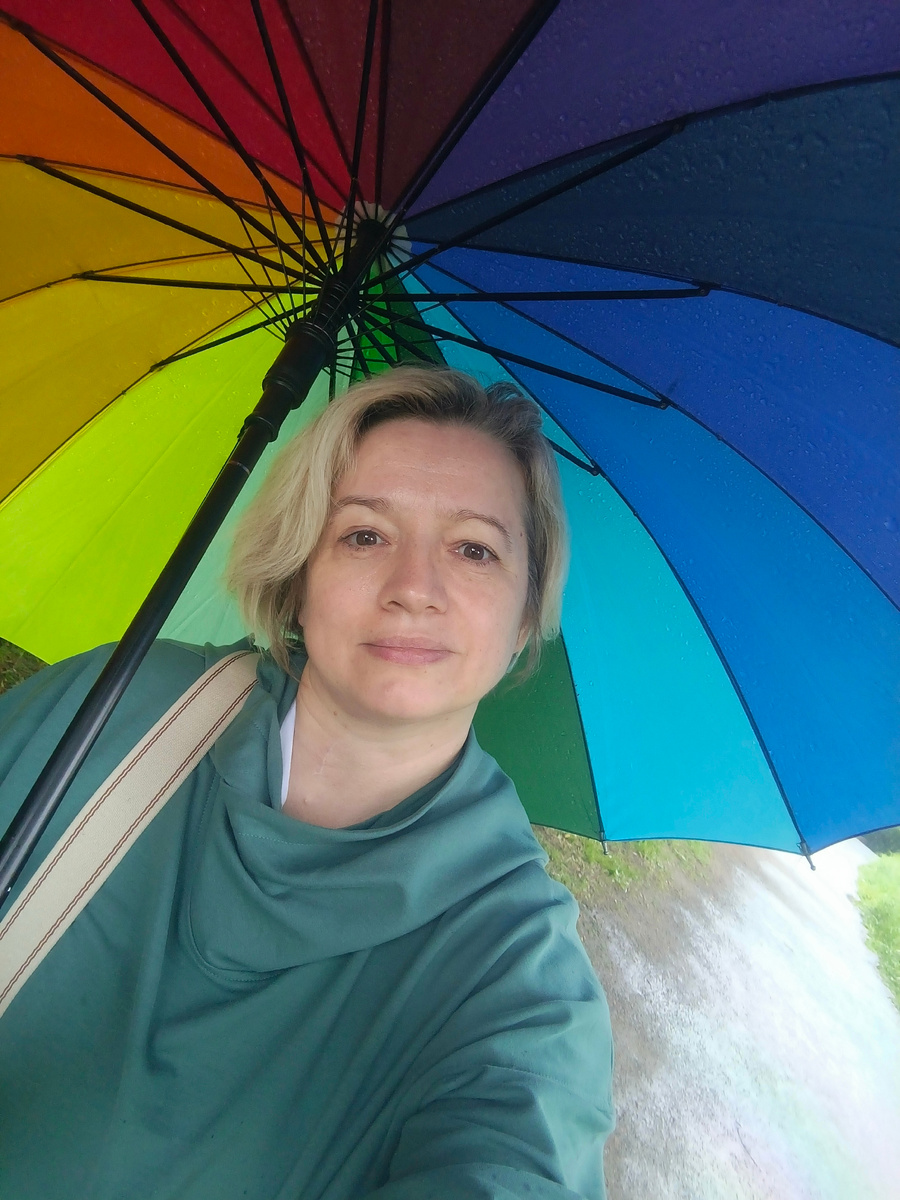 В последнее время я очень люблю гулять одна. Независимо от погоды, солнце или дождь, всё в радость. Ноги сами несут по маршруту, который выбирает сердце. То в лес, то в асфальтовые лабиринты улиц. Душа руководит. Иногда в дороге накатывают слёзы, в молитве, в воспоминаниях. Капают из глаз и, оттолкнувшись от щёк, падают на землю. Быстро исчезают, пытаются убежать от меня, словно боятся потревожить, будто не мои.. А иногда иду и улыбаюсь без повода, оглядываясь вокруг и наслаждаясь тем, что окружает. Чувство любви переполняет и даёт силы верить. Верить, что всё в руках Бога.. Сегодня по утру ходила на УЗИ, отправил гинеколог. Врачи в последнее время, словно в ящике с сокровищами, находят во мне новые болячки. Но я уже ничему не удивляюсь, со спокойствием выслушиваю диагнозы и обследуюсь по предписанию. Вышла из клиники, а по лужам пляшет дождик. И воспоминания почти тридцатилетней давности запрыгали в памяти.. — Мама, мама, дождик с пузыриками. Это надолго, ручейки побежали, и я побегу.