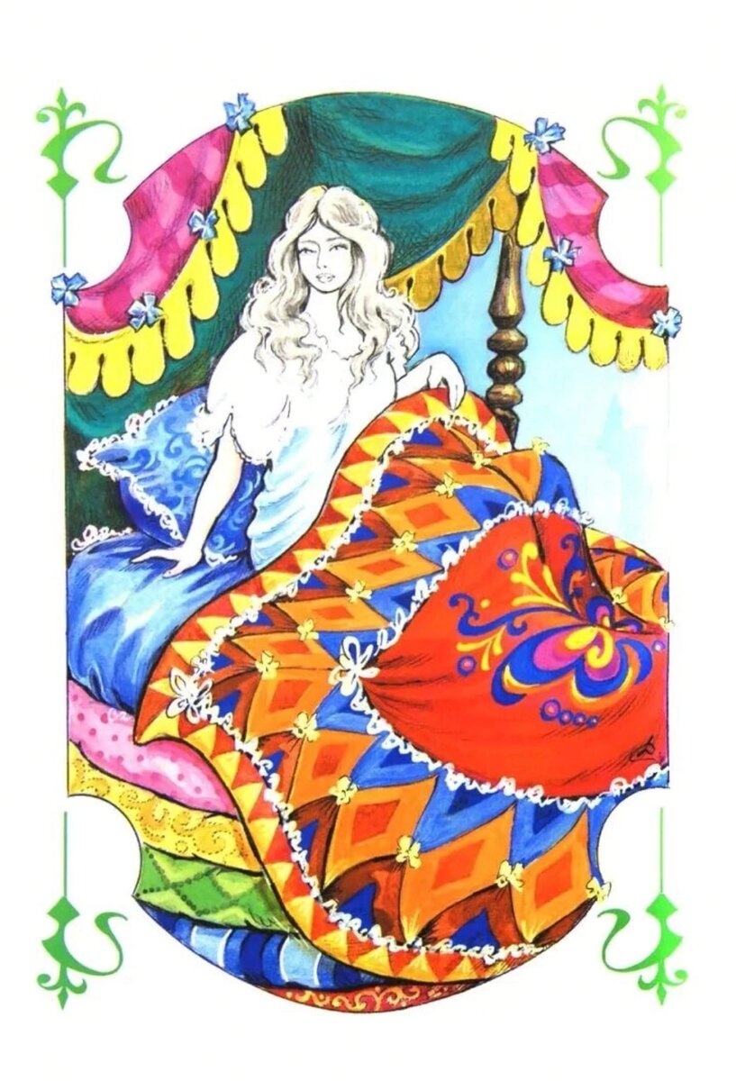Очень удивлялась поначалу, почему дочке так нравится эта сказка, почему хочет снова и снова её слушать, меня она никогда не цепляла. Какая-то изнеженная особа, не особо вежливая, её в дом пустили, спать уложили, а она ещё и недовольство выказывает, и чему собственно радовался принц... Так я воспринимала эту сказку раньше.