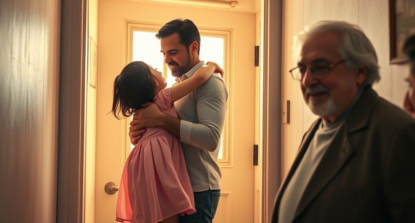 В прихожую влетела довольная дочь. Мужчина присел, вручил ей огромную куклу: