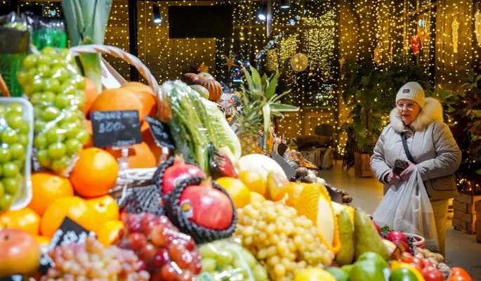 В Москве расширяется сеть круглогодичных ярмарок выходного дня с продуктами от фермеров. Отменены платы за торговые места, упрощена процедура регистрации. Проводится акция "Подвешенный мандарин", позволяющая передать фрукты нуждающимся. Ярмарки сочетают традиционные и современные форматы, отражая как изобилие, так и социальные аспекты жизни города.