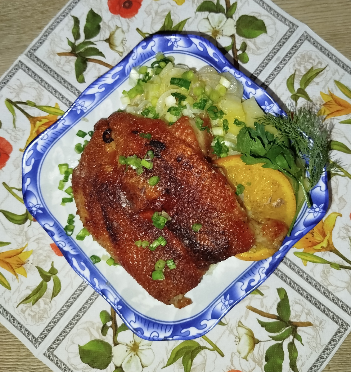 Сюрприз с утра от Домового )))(утиная, грудка под сванской солью, с апельсином)
