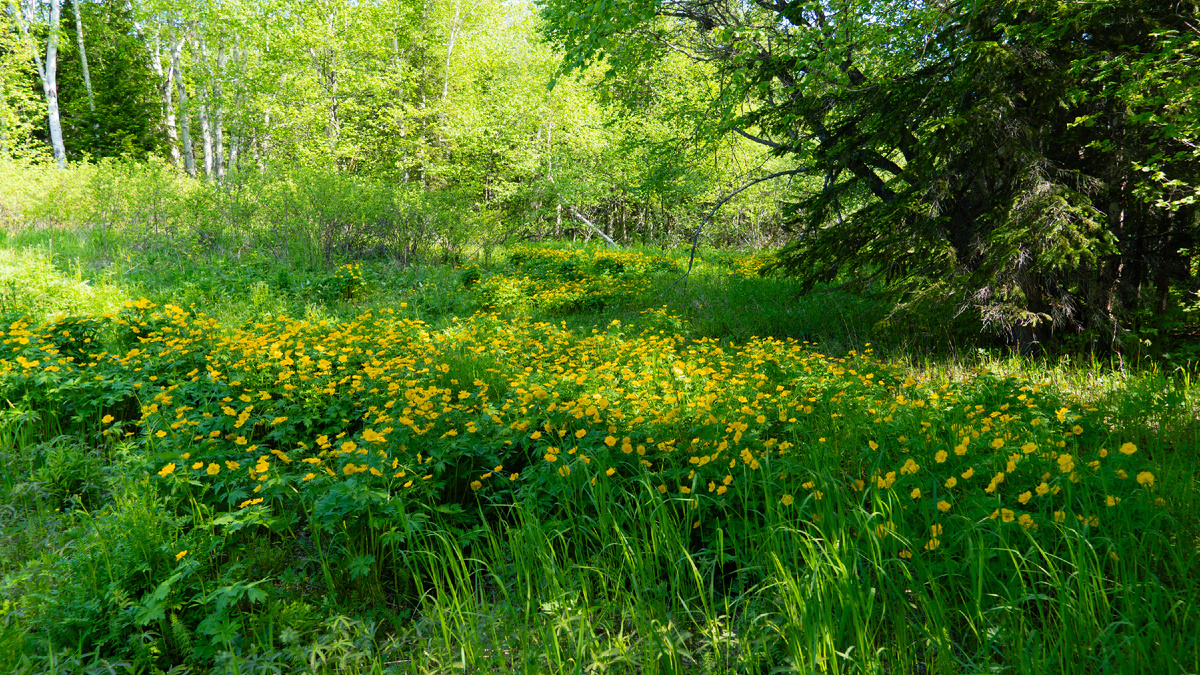 Всем привет! Бродил я как-то в начале лета по тайге, недалече от нашего городка, папоротник собирал. И вышел на обширную лесную полянку, усыпанную желтыми цветами. А на её окраине, среди деревьев, обнаружил землянку. Судя по состоянию, построили её совсем недавно. Скорей всего, охотники. Землянка добротная, внутри даже проведена электропроводка, установлена печка. А рядом, возле угла, свежая копанка. На стене, обшитой рубероидом, четкий отпечаток когтистой лапы. Медведь хулиганил. Подкоп ему сделать под землянку не удалось, но зато разбил маленькое оконце, шкодник такой, да оставил метку на стене. Мол, моё это место, понастроили тут, разрешения у хозяина тайги не спросили!)) Задерживаться в этом месте я долго не стал, а то вдруг лежит в тенёчке где-нибудь поблизости Топтыгин да поглядывает, кто там в его владения заявился)) Всем добра и хорошего настроения!
