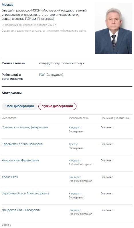 Романов Андрей Александрович Бывший профессор #МЭСИ (Московский государственный университет экономики, статистики и информатики, вошел в состав #РЭУ им. Плеханова) https://www.dissernet.org/person/RomanovAA_2