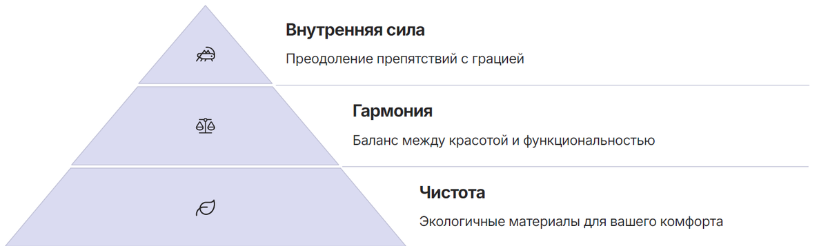 - Основание — чистота: экологичные материалы, прозрачность, честность.