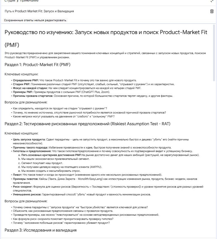 Расскажу, как я недавно оптимизировал процесс обучения с помощью NotebookLM. Сейчас прохожу один курс и нашёл удобный способ быстро запоминать новую информацию. Что делаю: 1)Записываю лекцию на аудио через Zoom (беру аудиодорожку, видео не нужно). 2) Забираю презентацию с занятия. 3) Добавляю свои текстовые заметки. Все эти материалы загружаю в NotebookLM и на выходе получаю: -Автоматический mindmap, чтобы сразу видеть структуру и ключевые мысли. Mindmap - пушка бомба, я сам такой не умею составлять -Конкретный план из нескольких ежедневных практик, которые помогают закрепить материал. -Аудио-подкаст, просто прикольно. Получается удобная схема, экономит время и реально улучшает запоминание информации.