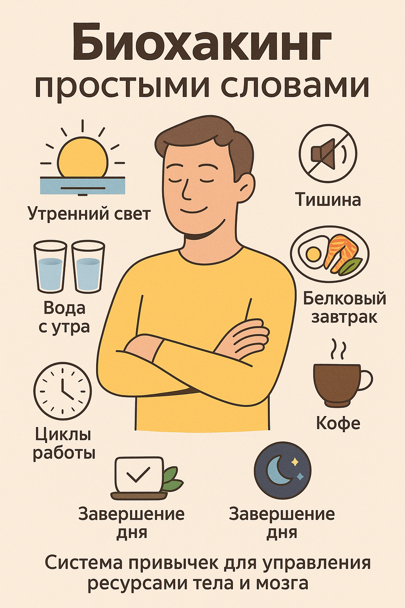 🧠 Когда слышишь слово «биохакинг», сразу представляется что-то сложное, дорогое и слегка безумное: