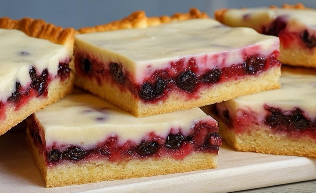 1. Нарезать сливочное масло, выложить в миску, добавить сахар и ванилин, перетереть до однородности. 2. Вмешать яйцо и щепотку соли. 3. Просеять муку с разрыхлителем, постепенно добавить к массе, замесить мягкое песочное тесто. 4. Выложить тесто в форму (22×22 см), равномерно распределить и сформировать бортики. 5. Смешать ягоды с крахмалом, выложить на тесто. 6. Выпекать при 180°C около 25 минут. 7. Смешать сметану со сгущённым молоком. 8. Достать пирог из духовки, равномерно залить сметанной смесью. 9. Оставить пирог при комнатной температуре на 3 часа для пропитки. Всем мира, добра, красоты!