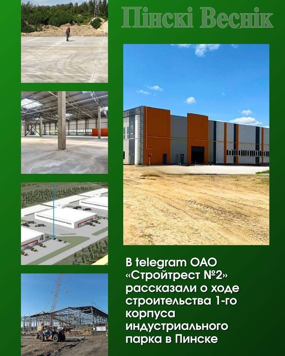 ✔️В телеграм-канале ОАО «Стройтрест №2» рассказали о ходе строительства 1-го корпуса индустриального парка в Пинске. 👉Готов каркас здания, полным ходом идут внутренние и наружные работы. Сейчас на объекте ведутся: ▪️устройство полов, монтаж электротехники и отделка внутренних помещений; ▪️строительство крылец, отмосток, пандусов и бетонных дорожек; ▪️монтаж инженерных систем: вентиляции, канализации и водопровода. ⏸️На площадке работают филиалы: СУ-100 (генподрядчик), СУ-138 и УМСР-36. ⚡️Завершение корпуса станет важным шагом для развития промышленной инфраструктуры г. Пинска, создания новых рабочих мест и привлечения инвестиций. 📍📍@Пинский Вестник ЮТУБ | САЙТ| ИНСТ | ВК | ОК | ФЕ | Прислать новость