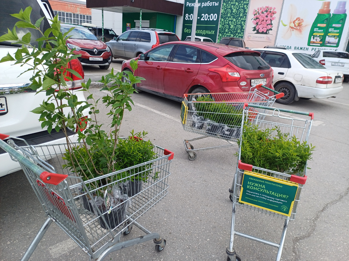 Всем доброго дня! Лето началось, работы по участку очень много. Хочется успеть облагородить входную группу, а также газон перед домом. С супругом запланировали поездку во флористический центр. Делюсь покупками: Проаналировав ассортимент, пришли к выводу, что мы хотим спирею японскую белую. Атакже супруг сказал не уедем пока не выберешь гортензию) Знает, что давно хочу и планирую их много на участке. На данный момент взяла такую: Загрузили по полной машину с "растюшками" и поехали на дом. Вот такой мини сад получился в доме после выгрузки саженцев из машины. Растения куплены, теперь осталось оформить преддомовую территорию. А ведь она совсем не готова...Взяли лопаты, тачку садовую и пошли работать: Всё максимально пытаемся сделать сами, поэтому даже мысли нет о ландшафтнике...Возможно и пожалеет, но хочется пройти этот путь самим! Вот так выглядит высадка спиреи. Надежда на то, что она закроет собой подпорную стенку когда разрастется. Вы, наверное, спросите что за травка на земле...?