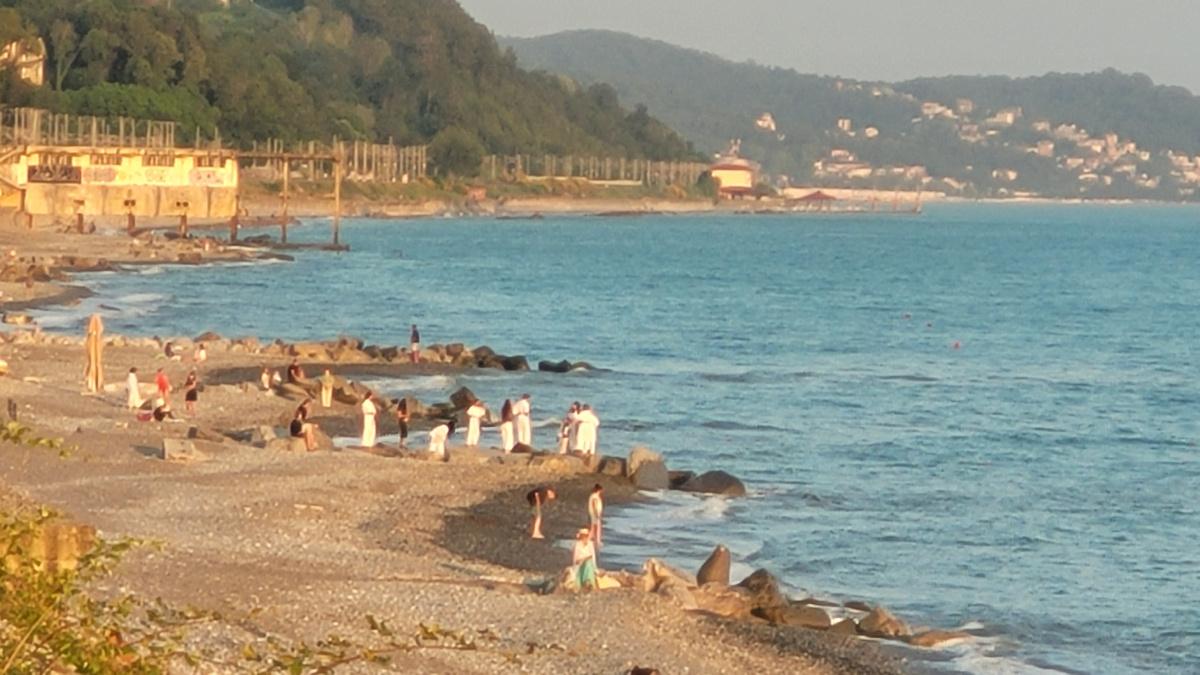 Кстати, помимо группы людей в белых одеждах, которые собрались в круг на пляже, мы увидели еще одну девушку, которая становилась в странные позы.