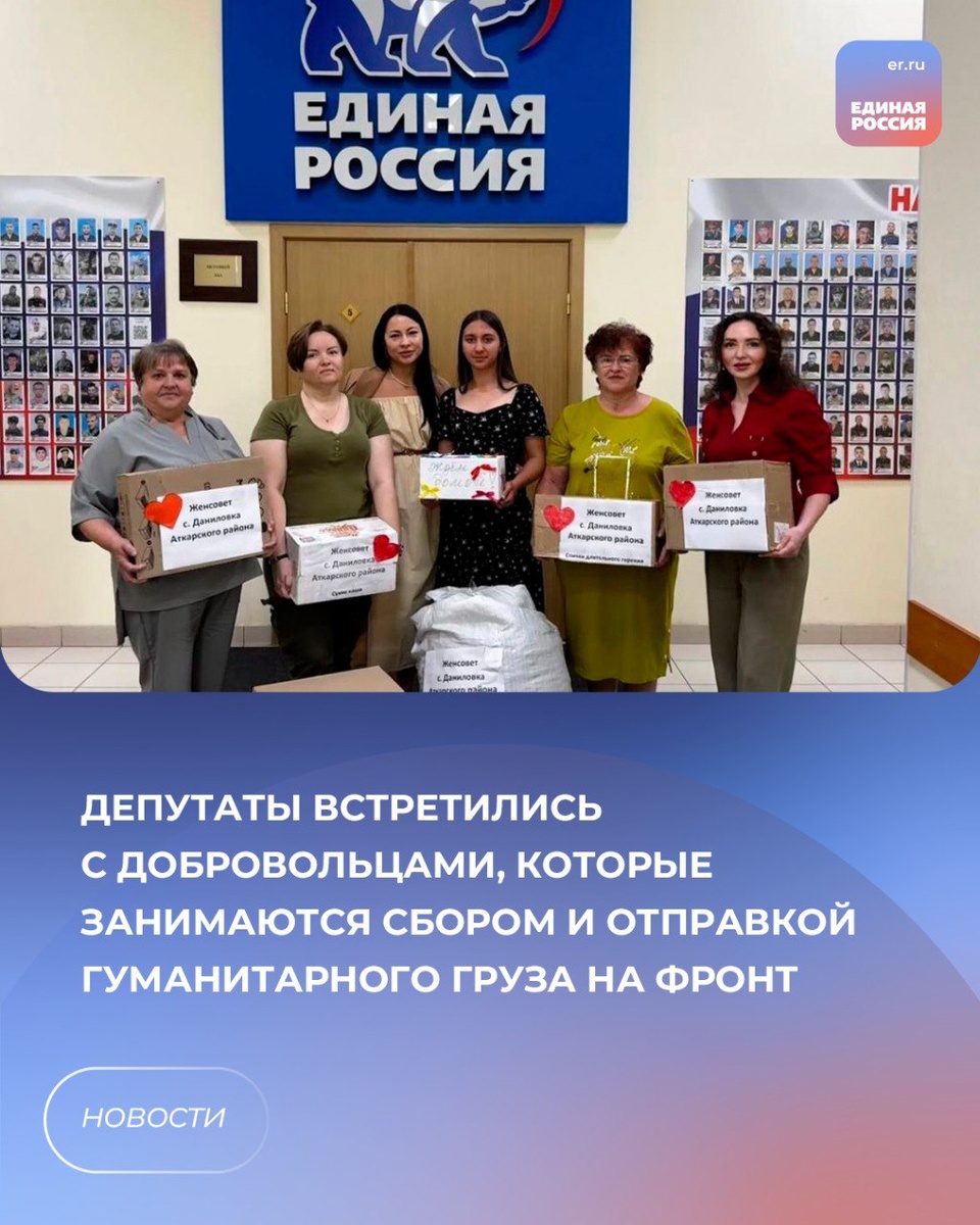 ✅Партия «Единая Россия» оказывает всестороннюю поддержку СВО с первых дней ее начала. Юлия Литневская вместе с волонтерами из села Даниловка Аткарского района приняла участие в отправке очередной партии гуманитарной помощи на передовую. 💬«К июню 2025 года женщинами-добровольцами собрано и отправлено на линию фронта более 880 тонн гуманитарной помощи. В Аткарском районе живут очень скромные, простые люди, которые проводят очень важную для фронта работу. Пока есть такие неравнодушные сердца нашу страну не победить», - отметила Юлия Литневская. Гагик Киракосян поблагодарил волонтеров из Краснопартизанского района. 💬«Добровольцы из движения "ZА НАШИХ" организовывают сборы и транспортировку гуманитарных грузов, помогают в реабилитации ветеранов, поддерживают семьи погибших и раненых ребят в зоне спецоперации. Всех их заслуг не перечесть и невозможно переоценить их вклад в будущую победу», - сказал Гагик Киракосян.